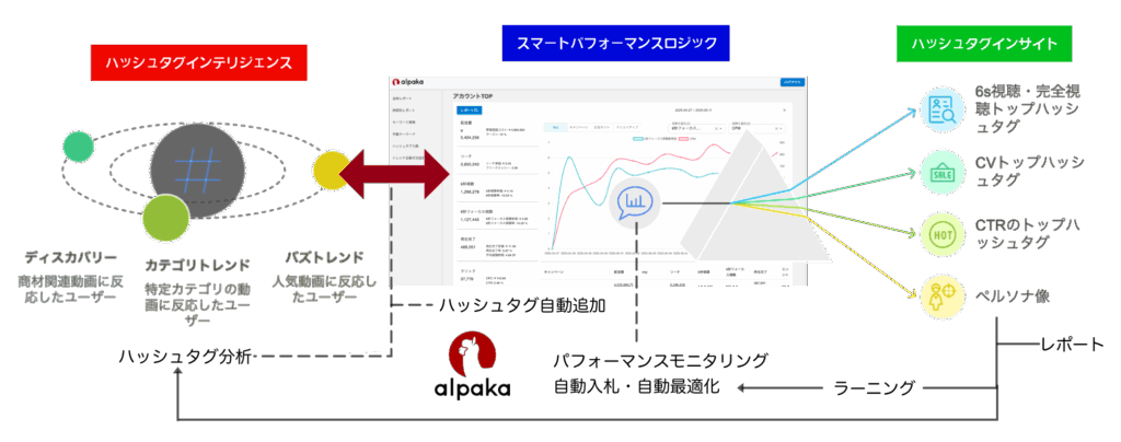 alpakaは、TikTok広告に特化したインテリジェンスを持つTikTok広告最適化プラットフォームです。ハッシュタグ分析、独自入札ロジック、TikTokの最新トレンド情報を活用することによって縦型ショート動画フォーマットならではの「視聴効率」や「クリックの質」に関する問題を解決します。